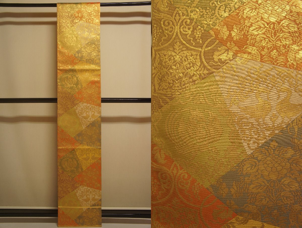 - 特選『紫紘』本金箔地裂取名物裂文袋帯[O15206]