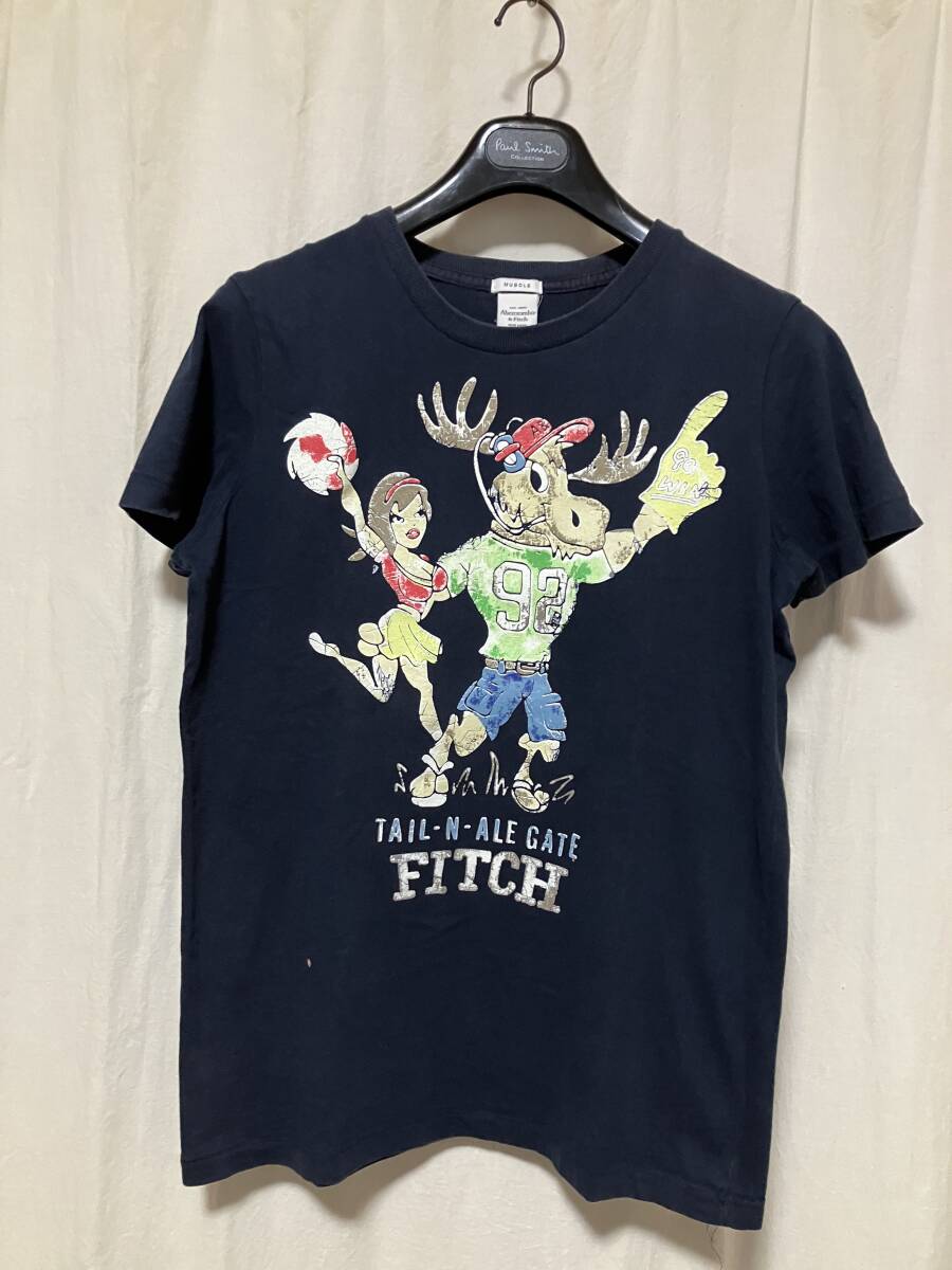 > Abercrombie & Fitch アバクロンビーアンドフィッチ ムース & チアプリント 半袖Tシャツ 紺ベース S 中古品 色抜けあり