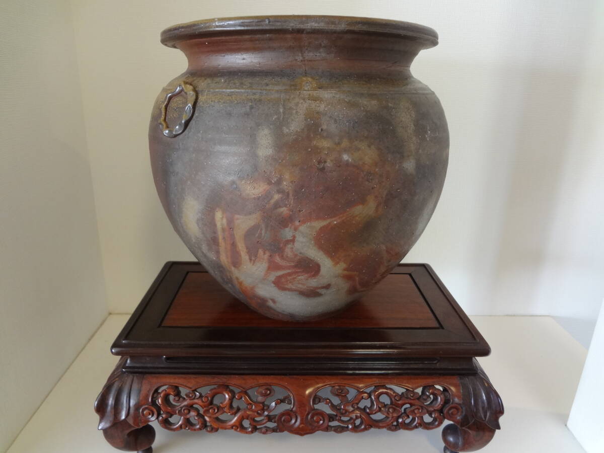 - 備前窯変広口大壺 乗松俊行 共箱 昭和47年備前焼著名陶芸家作陶展大賞受賞作