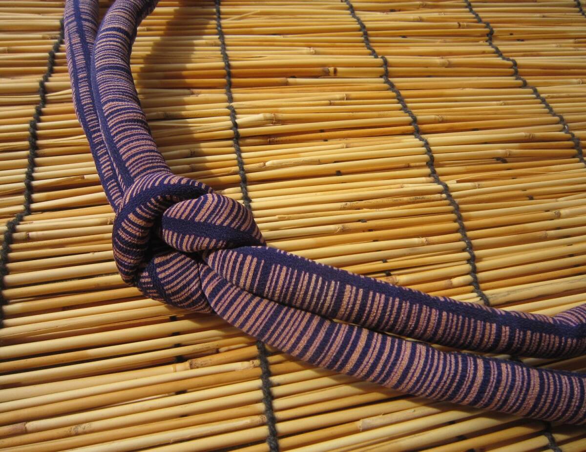 - ◇◆『紅』アンティーク・正絹古布 青紫とベージュ変わり格子染め縮緬 丸ぐけ帯締め