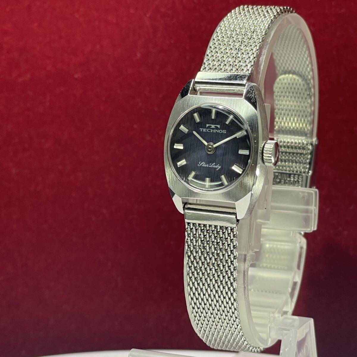 - 70s 未使用品 高級 TECHNOS テクノス スターレディ 手巻 腕時計 アンティーク ヴィンテージ 稼動品 レディース