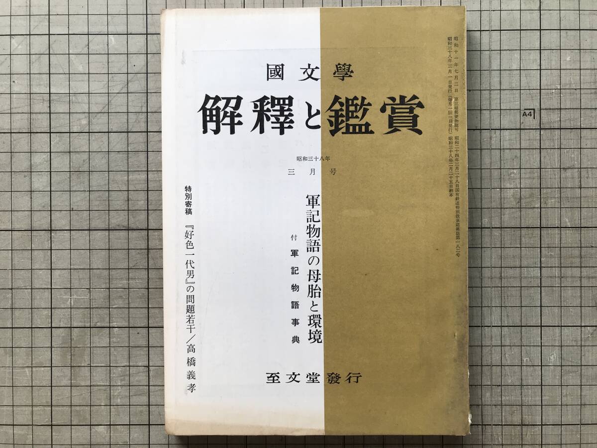> 『国文学 解釈と鑑賞 第332号 第28巻第4号 軍記物語の母胎と環境』冨倉徳次郎・黒田俊雄・五来重・杉浦明平 他 至文堂 1963年刊 10177