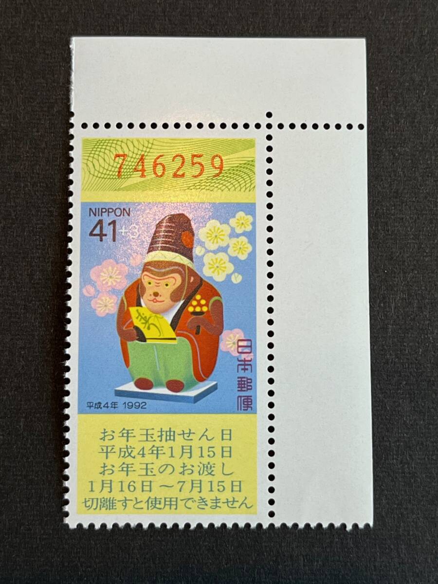 > 年賀切手 平成4年用 猿の三番叟(金沢張り子) 寄附金付 1枚 切手 未使用 1991年