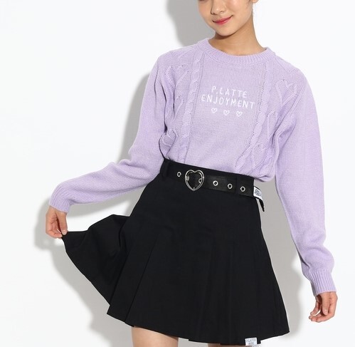 > ラスト 新品 PINK-latte 【洗える】【チクチクしにくい】ハートケーブル ニット ライトパープル(081) 02(M165cm)