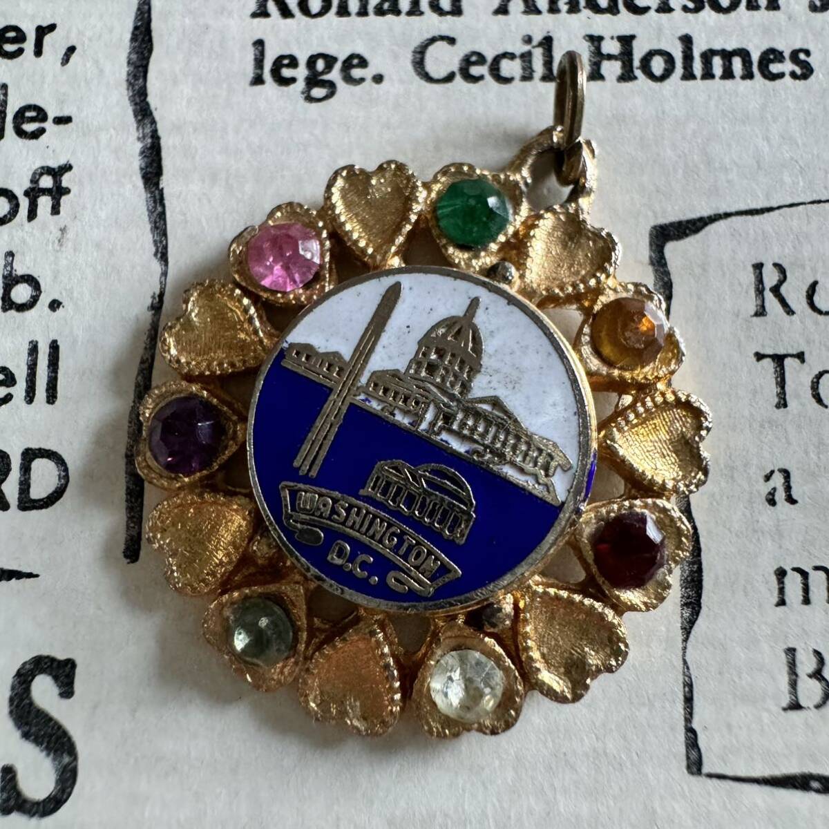 - ハート石カレッジリング金ゴールドネックレストップピンズ40sバッジ/バッヂ古着ビンテージチャーム50sアンティークお土産ペンダントヘッド