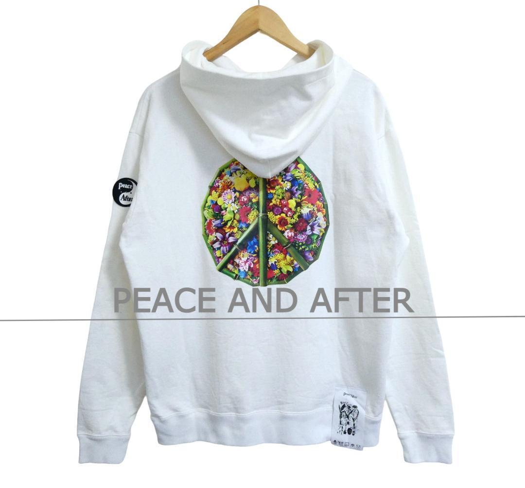 > 美品 PEACE AND AFTER ピースアンドアフター 東信 コラボ ブラザーフッド M フード 長袖 スウェットパーカー プルオーバー オフホワイト