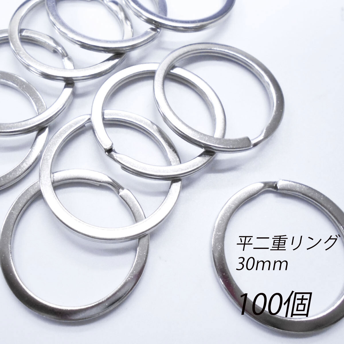 - 二重リング 平型 シルバー 30mm /100個 / 合金 金具 パーツ キーホルダー レザークラフト 材料