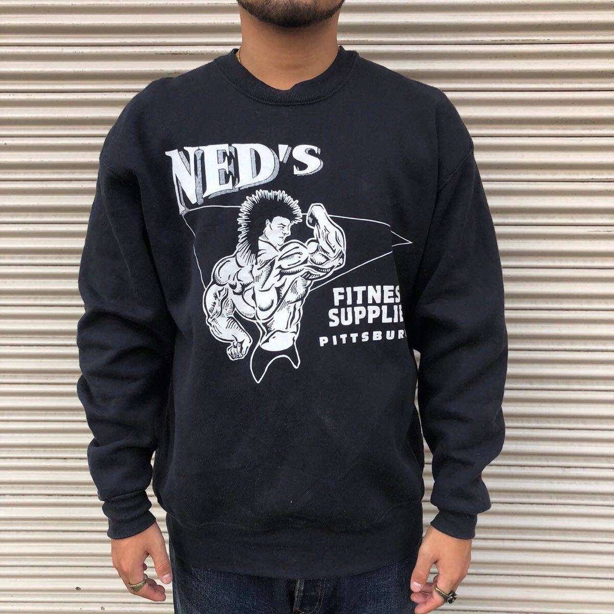 - スウェット Ned's Fitness Supplies トレーナー ブラック プリント ヴィンテージ 限定品 gold gym フィットネス コットン 黒 ラッセル XL