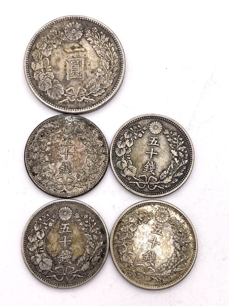 - 日本古銭●一圓銀貨 竜50銭銀貨×4