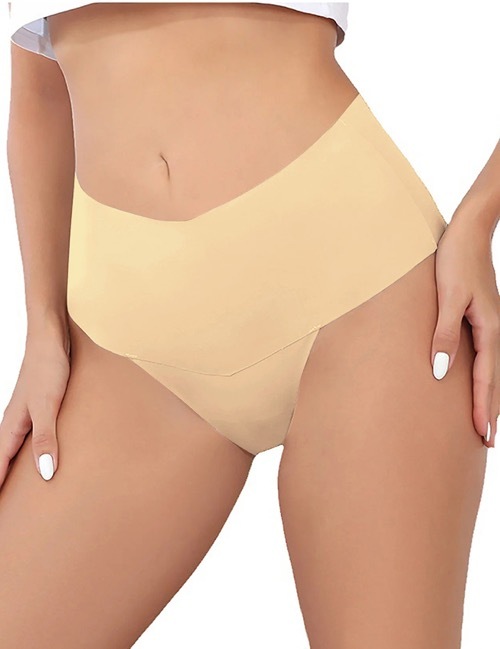 - 5347-3 ハイウエスト ショーツ 大きいサイズM-2XL シームレス セクシーランジェリー 女性 ベージュ