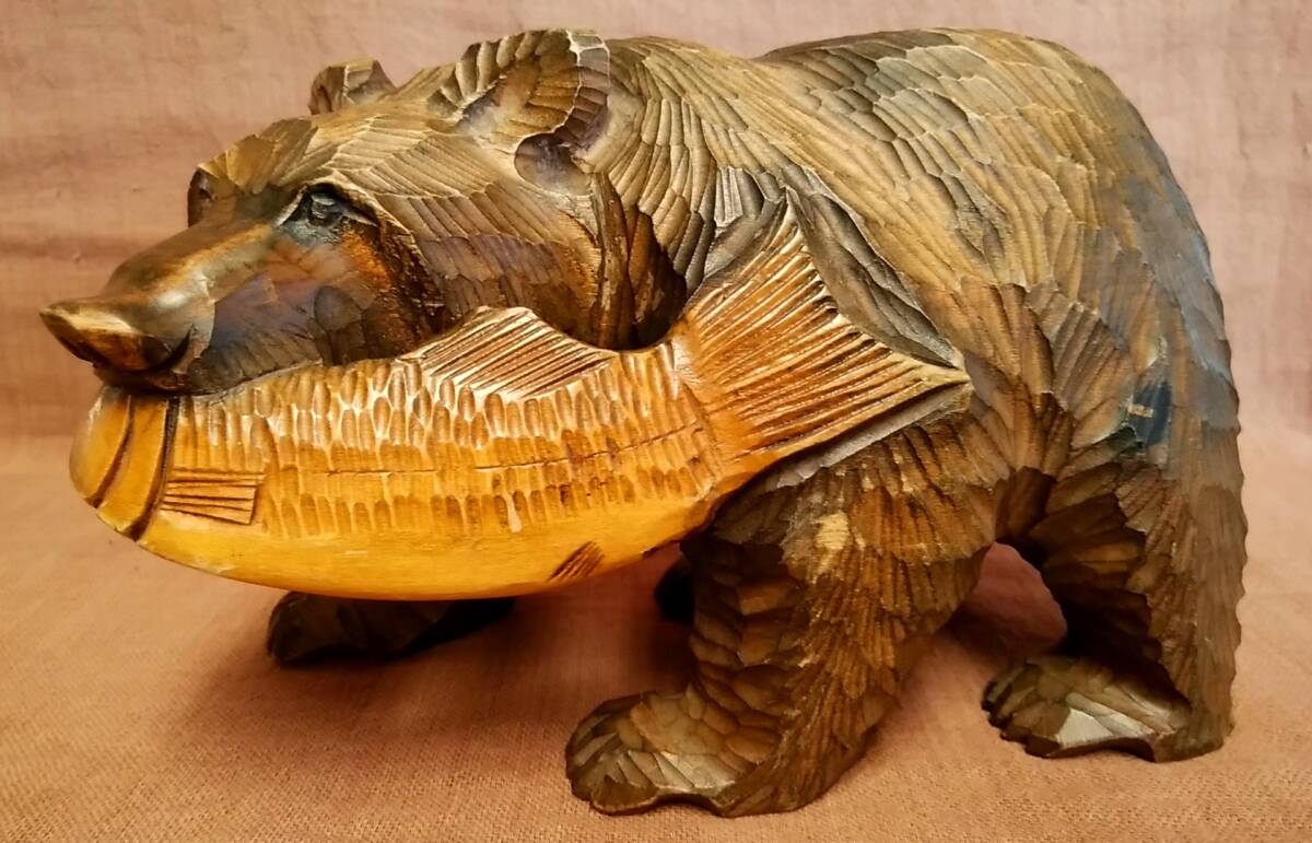 - 木彫り 熊 置物 全長約21cm 彫刻 クマ 木彫 くま 木彫り熊 古民家 インテリア オブジェ 北海道
