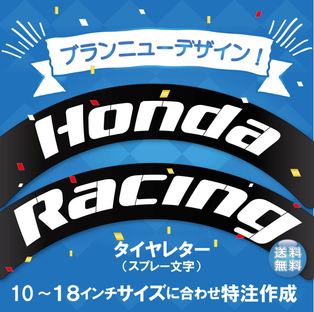 「HondaとRacing でタイヤサイズが225/35/18で、文字高さ4cmで作成願います。。」 等