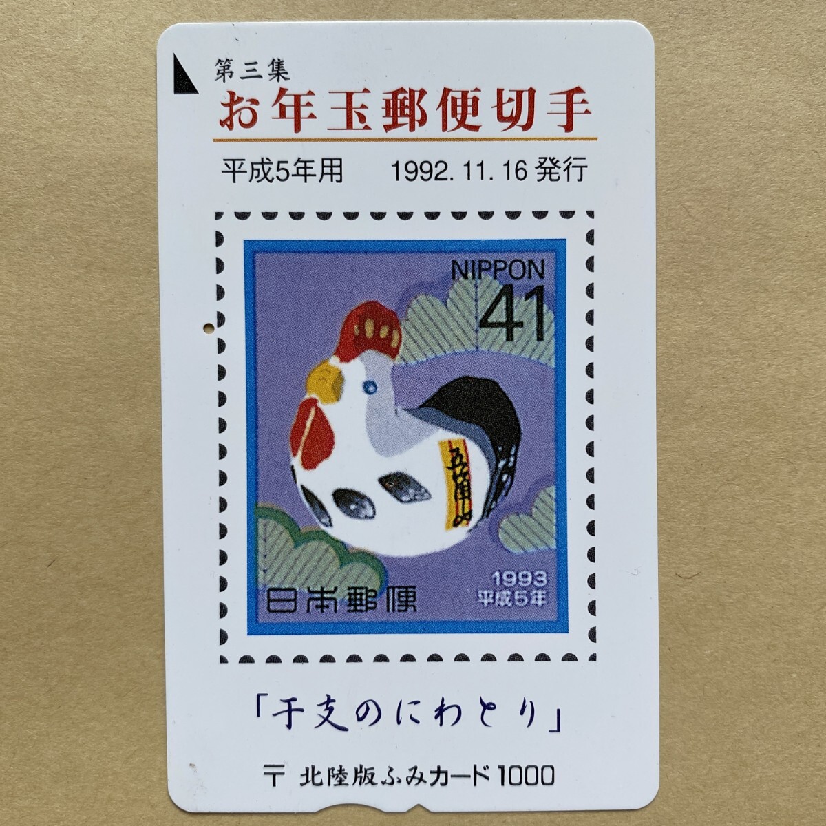 > 【使用済】 ふみカード 北陸版 第三集 お年玉郵便切手 平成5年用 1992.11.16発行 「干支のにわとり」