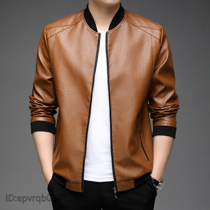 - 新入荷◇レザージャケット メンズ スタジャン シンプル ライダース 革ジャン 紳士 バイクウェア 野球服 カジュアル ブラウン/Lサイズ
