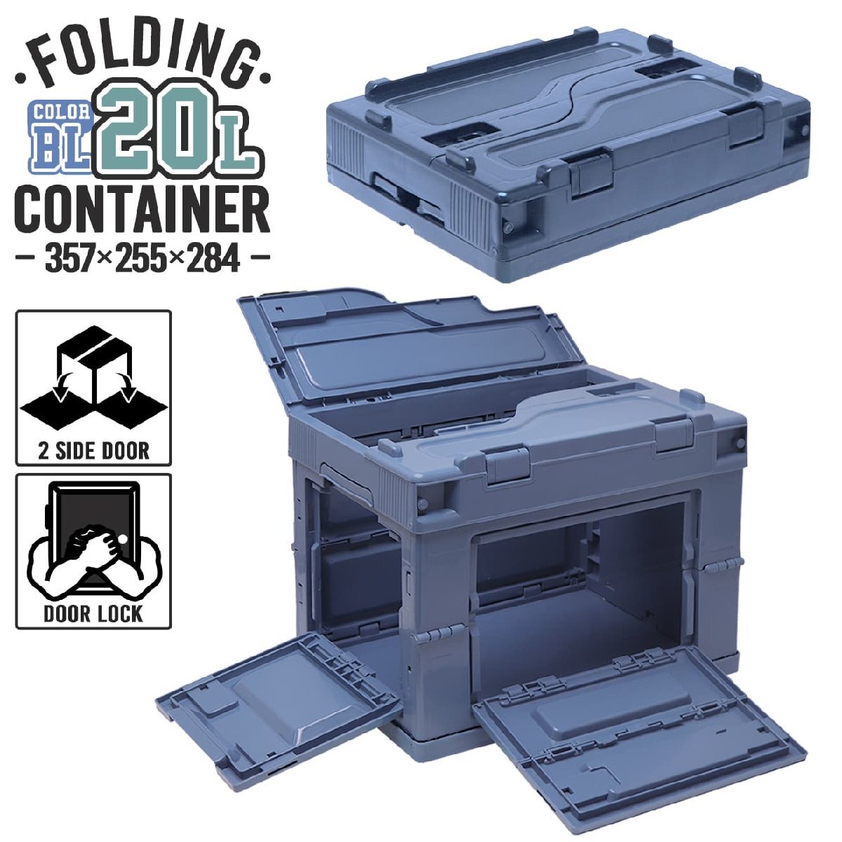 - FDC0006BL ミリタリーベース 折り畳みコンテナ 20L 中窓2箇所付(長辺1&短辺1) 折りたたみコンテナ
