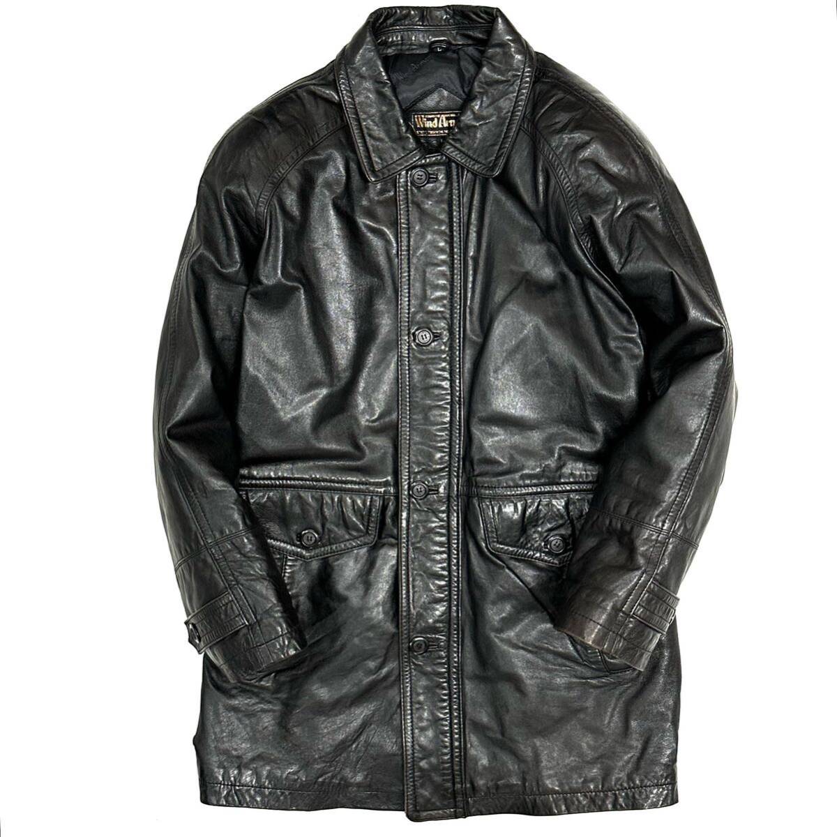 - 良品!!WIND ARMOR 羊革 ラムレザー コート(L)ブラック 黒 メンズ アウター