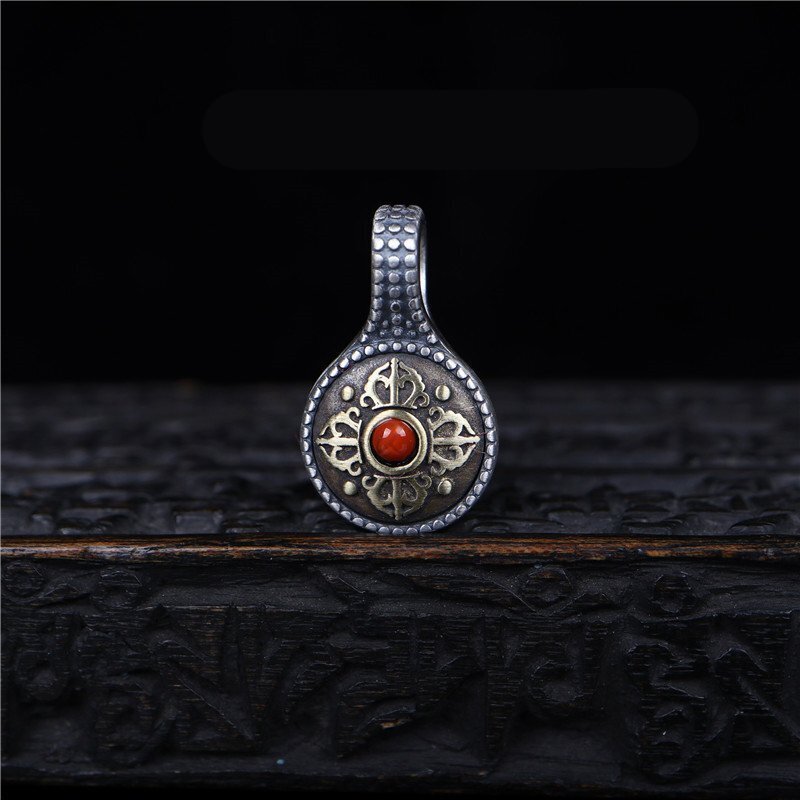 - 中国 チベット 密教 s 925純銀 南紅 ペンダント 仏珠配 裝身具 護符 開運 風水 お守り 厄除け