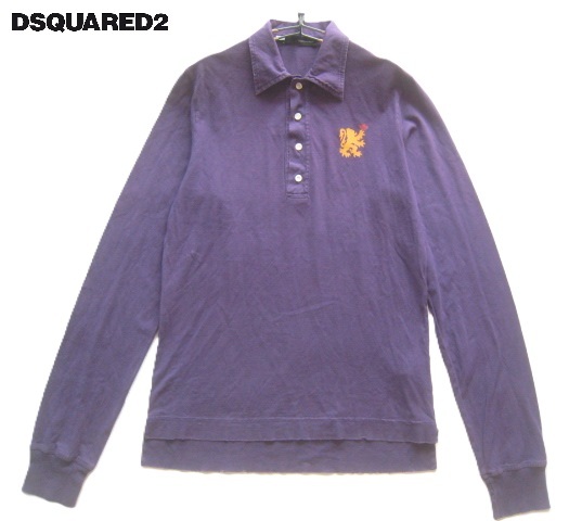 > 極上イタリア製!!ディースクエアード DSQUARED2*DUKE ロゴプリント ヴィンテージ加工長袖ポロシャツ S 紫 (株)三崎商事 パープル