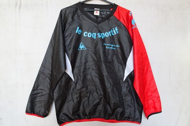 > le coq sportif/ルコックスポルティフ/長袖プルオーバー/ナイロン系ポリエステル素材/ロゴプリント/黒/ブラック/赤/レッド/Oサイズ(8/28R)