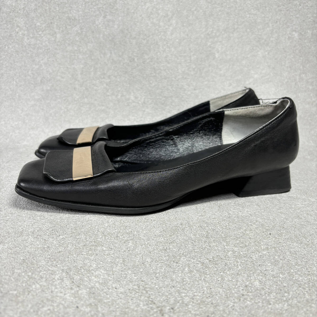- サヴァサヴァ ローヒールメタルパンプス 24.5cm 本革 ブラック
