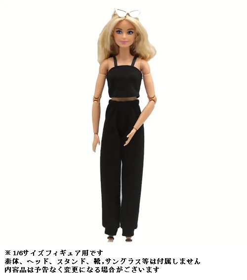 - 1/6サイズフィギュア用衣装 黒のトップス&パンツ コスチュームセット