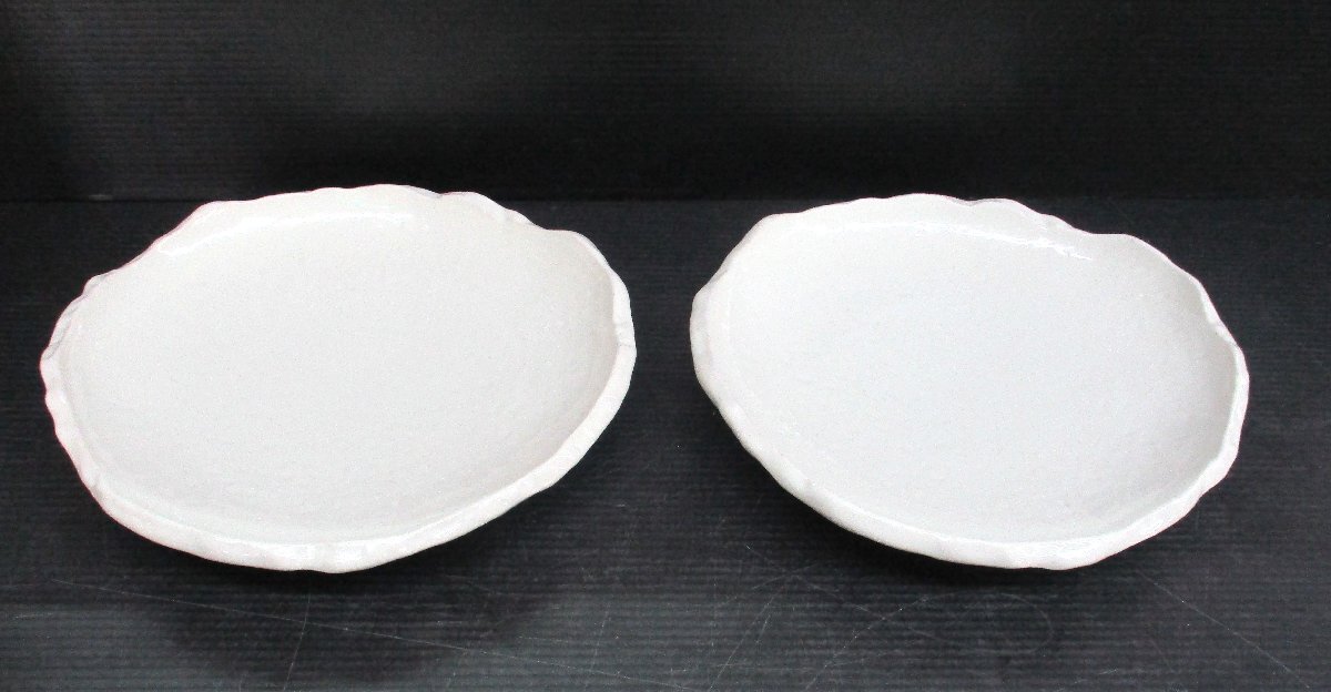 > ★ 97967 ホワイトプレート 大皿 2枚 石皿調 幅27 × 奥行24.5 × 高さ4.5㎝ 白 中古 ★