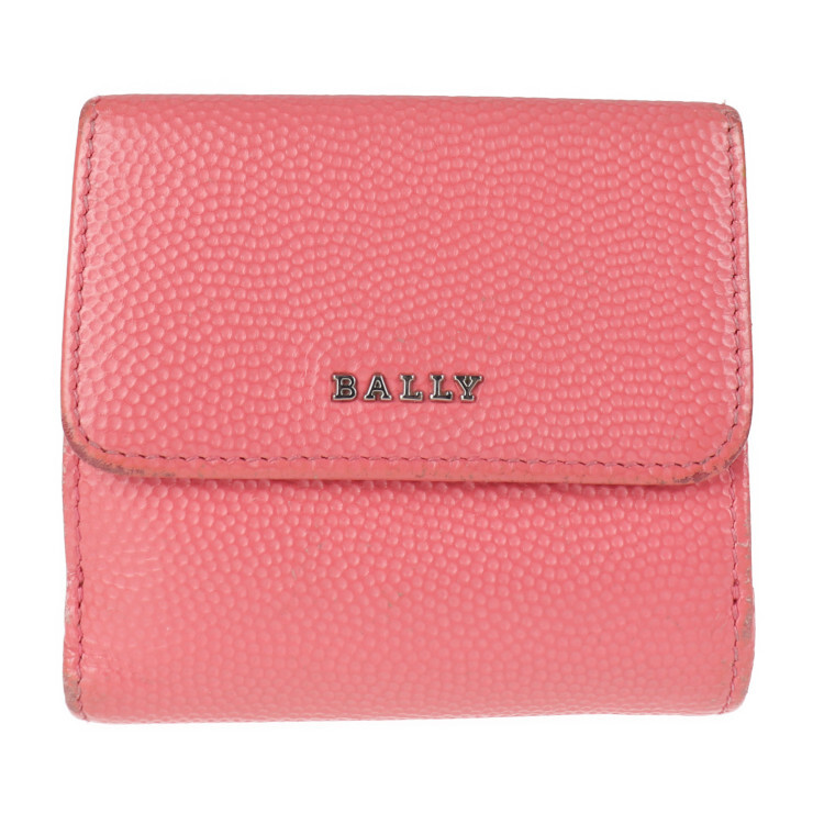 - BALLY バリー コンパクト財布 - 三つ折り財布 レザー ピンク系 シルバー金具 【本物保証】