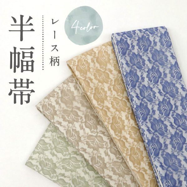 > 【半幅帯】 新品 フラワーレース 麻半幅帯 『ベージュ』 モダン 本麻 長さ400cm 帯巾17cm k24-23
