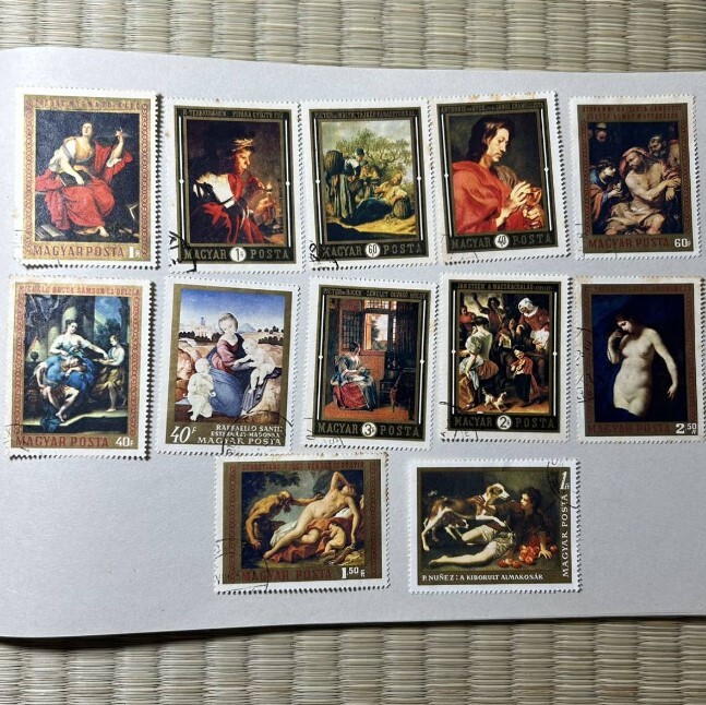 - 切手 ハンガリー切手 1970年 絵画切手 ブダペスト国立西洋美術館 ロッカ、フリーニなどイタリアの画家の絵 12種 573