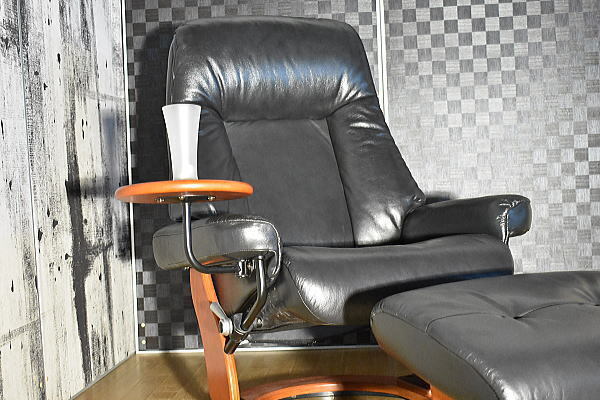 肘置きの横にサイドテーブルが付いています。(左右どちらでも設置可能)