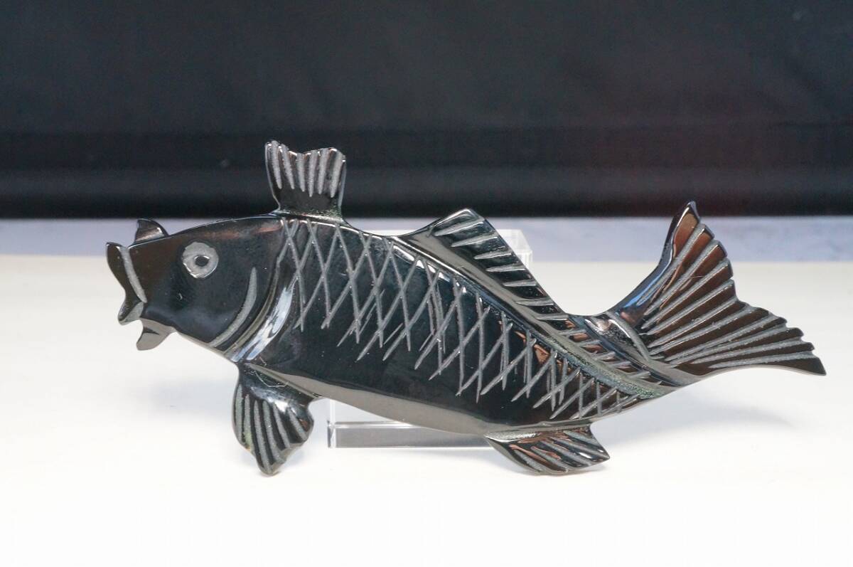 - 希少30年前の未使用在庫!上質天然オニキス彫刻カービング「鯉」ルース色合い彫が美しい!