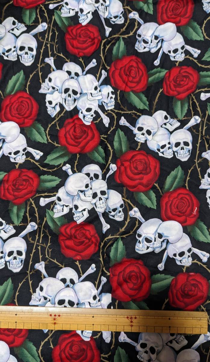 - はぎれ アレキサンダー ヘンリー 綿100% ガイコツ 骸骨 薔薇 バラ