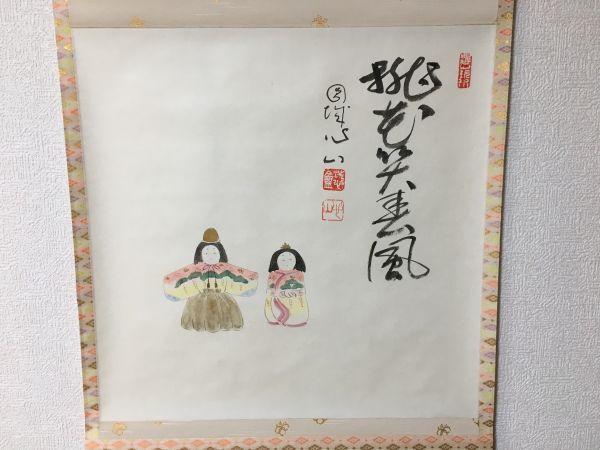 - 【雪華】 宮前心山 横物 立雛 桃花笑春風 立ひな 立ヒナ お雛さん 共箱 掛軸 茶掛 茶道具 【 表 裏 千家 而妙斎 即中斎 鵬雲斎 坐忘斎 】