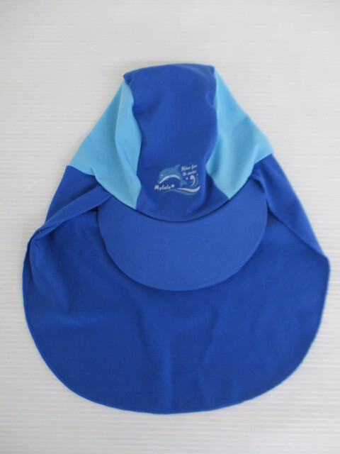 - 【お買得!】★Mylala★子供用スイムキャップ 青 日よけ付き帽子/頭囲51cm/あごひも欠品