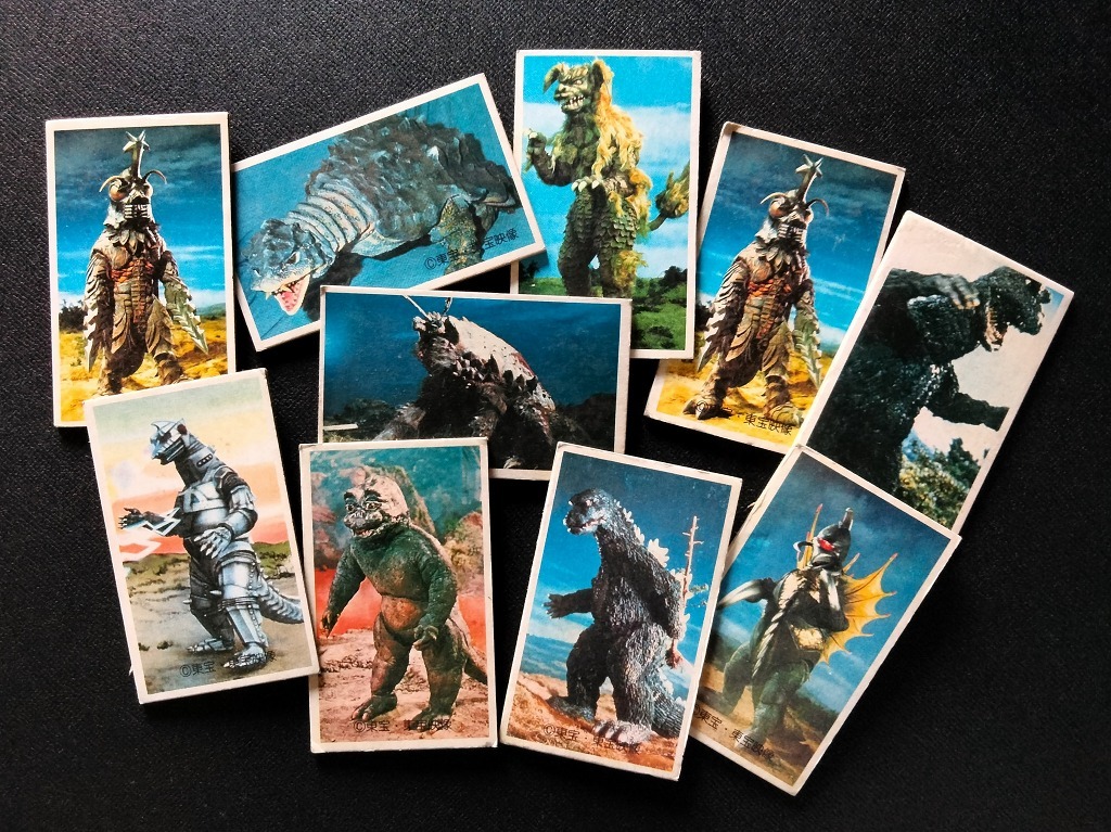 - GODZILLA ゴジラ & 東宝大怪獣 当時物 めんこ 未使用 10枚セット メカゴジラ !! ☆ ミニラ ガイガン メガロ 駄菓子屋 面子 角めん ③