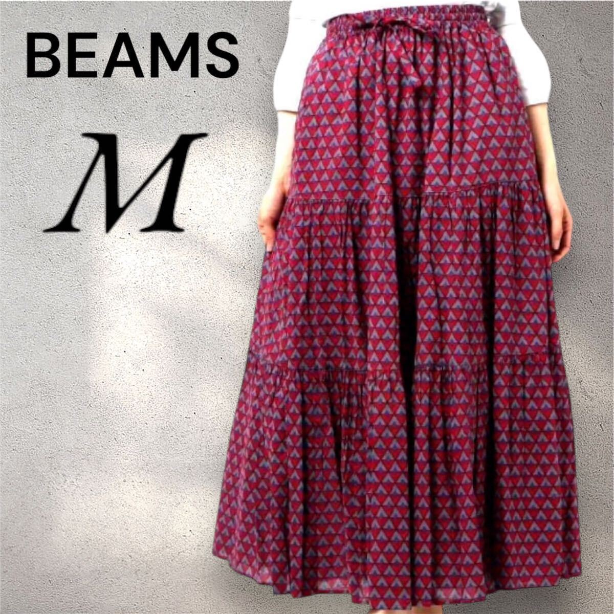 - 美品 BEAMS B:MING ビームス 幾何学模様 ロングスカート Mサイズロング丈 ウエストゴム