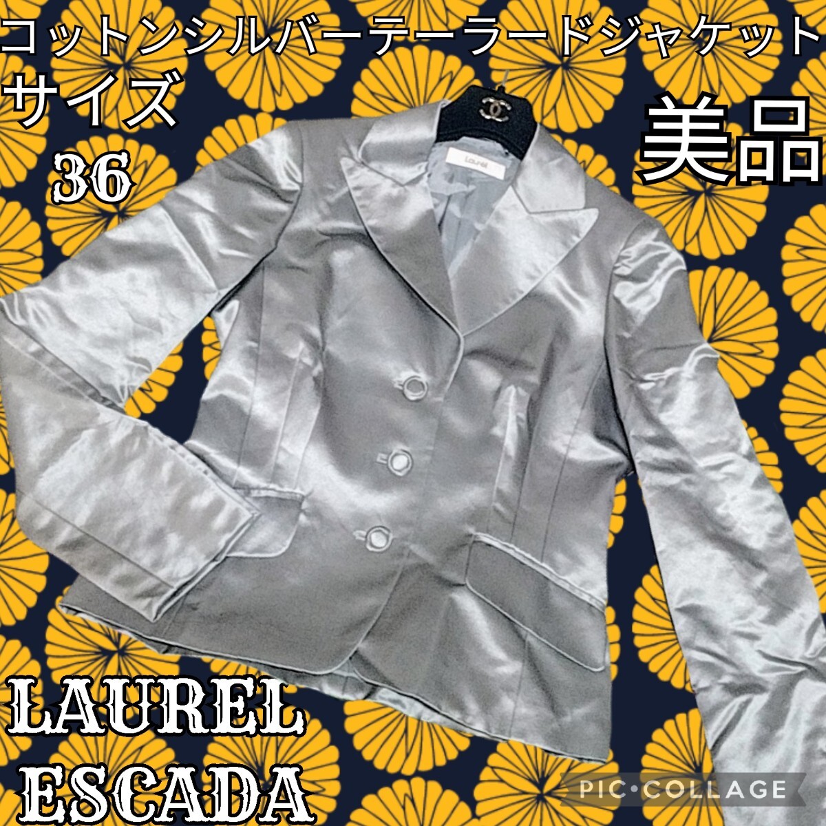 - 美品★ローレル★エスカーダ★テーラードジャケット★シルバー★ブレザー★銀★綿★春★LAUREL★ESCADA★コットン★秋★アウター★無地