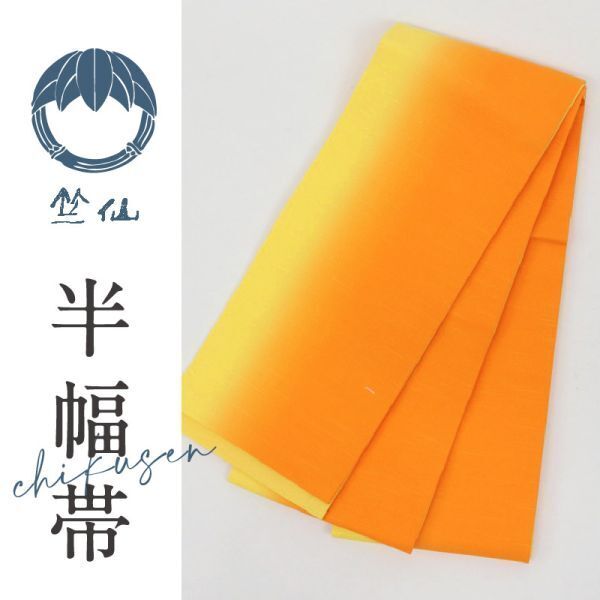 > 【半幅帯】 『竺仙鑑製』 ぼかし 蜜柑色 リバーシブル 綿 イエロ― オレンジ 長さ350cm 幅17cm 日本製 K24-15