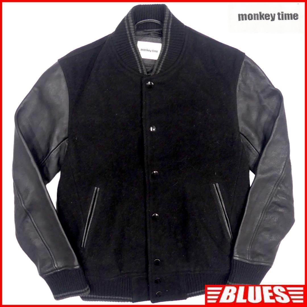 - 即決★MONKEY TIME★メンズS レザーアームスタジャン モンキータイム 黒 本革 ブルゾン 本皮 ジャンパー 革ジャン