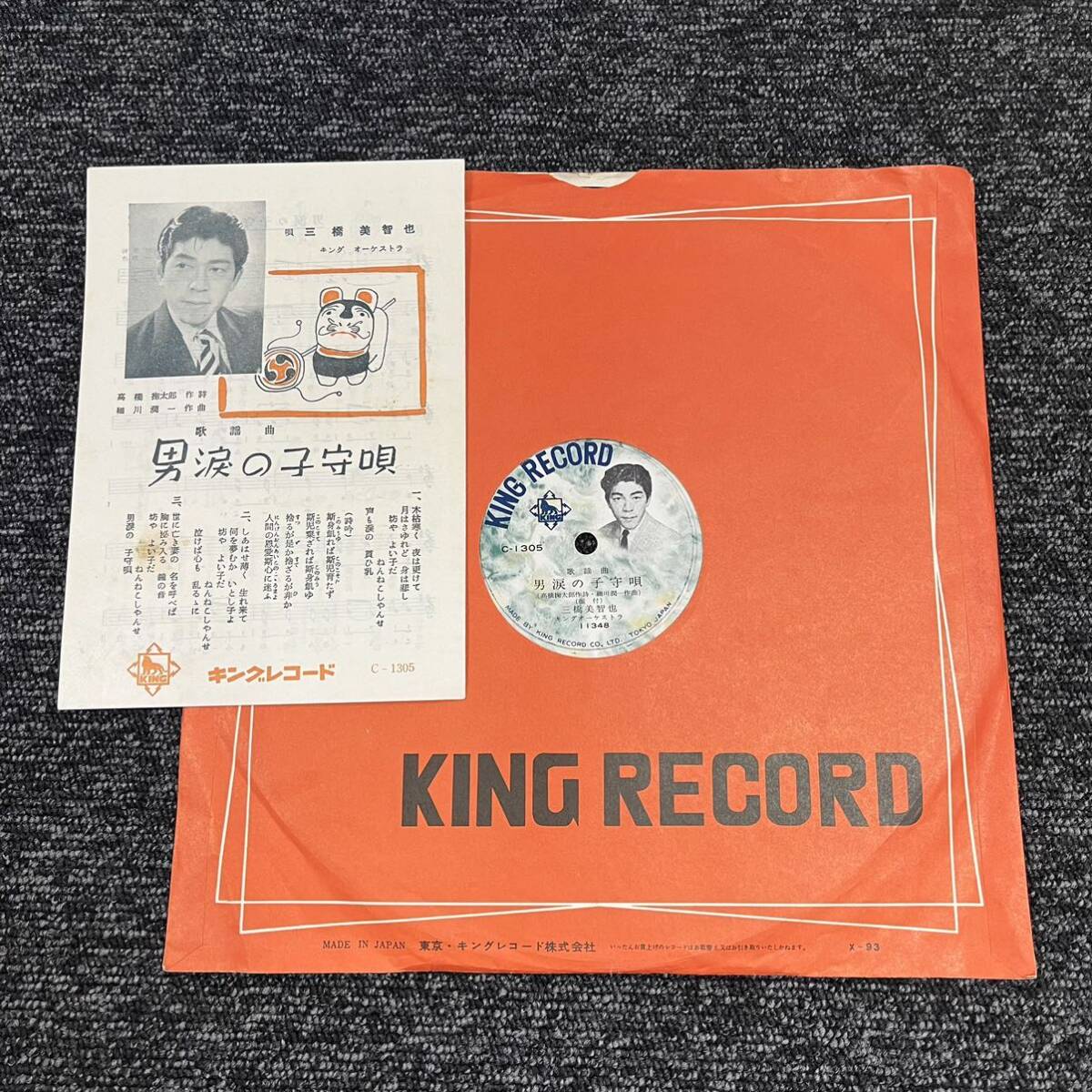 - SP盤 レコード / 男涙の子守唄 - 三橋美智也 - あゝ田原坂 / 歌詞カード付き / C-1350 KW126