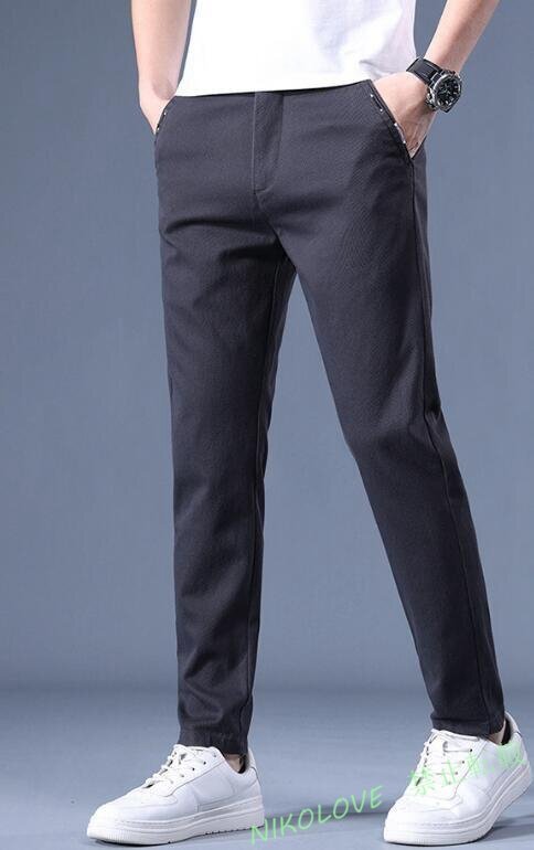 - 新品 メンズ スラックス ビジネスパンツ ストレッチ スリム チノパン イージーパンツ サマーパンツ 涼しい 通気 快適 グレー LF705