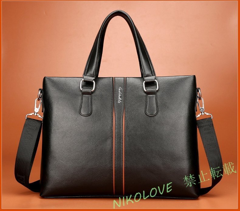 - 新品人気品 メンズ 高級PUレザー ビジネスバッグ ブラック ブリーフケース ショルダー スクエア 横型 上質 質感 ブラック LG572