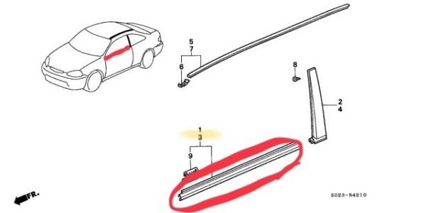 > 【右側】新品 シビック EK系 EJ7 フロント ドアモールディング ASSY CIVIC 未使用 ホンダ 純正 EK2 EK3 EK4 EK9