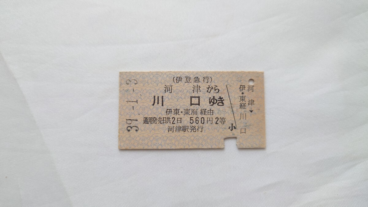 - ▽伊豆急行▽河津から川口ゆき国鉄連絡乗車券▽A型硬券昭和39年