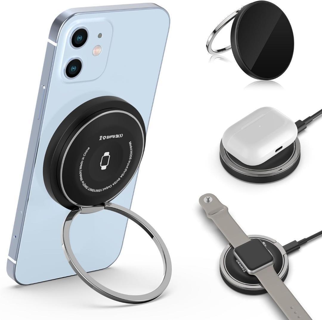 - 3in1 ワイヤレス充電器 iphone アップルウォッチ対応 両面同時充電 磁気ワイヤレス充電器 magsafe充電器 magsafeリング 急速充電 薄型