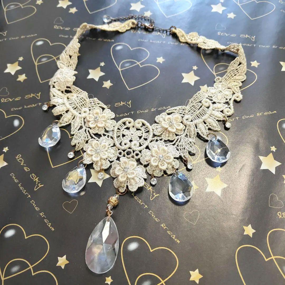 - レース編み&ビジュー 豪華なネックレス 外国製 サイズ大きめなので大柄な方にも