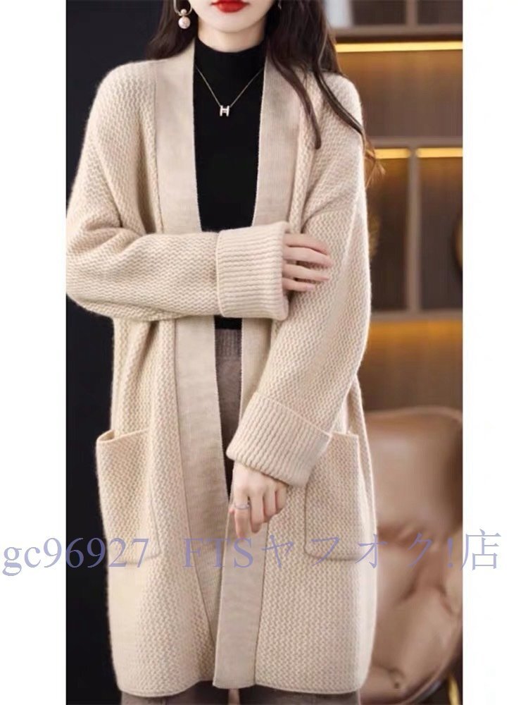 > A6254☆新品秋冬 ニット カーディガン コーディガン ミンクカシミヤ混 ロング丈 ポケット付き アウター ニットコート ベージュ