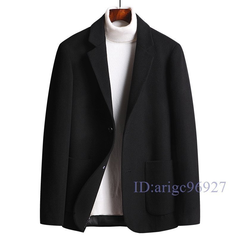 - S380☆新品メンズ ダッフルジャケット ビジネス ブレザー ブルゾン ウール混 テーラードジャケット チェスターコート アウター ブラック L