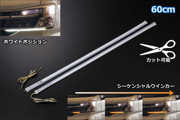 > [長さ60cm] 12V車 汎用 LEDテープライト シーケンシャルウインカー/デイライト機能 流れるウインカー 流星 LED テープ 側面発光タイプ