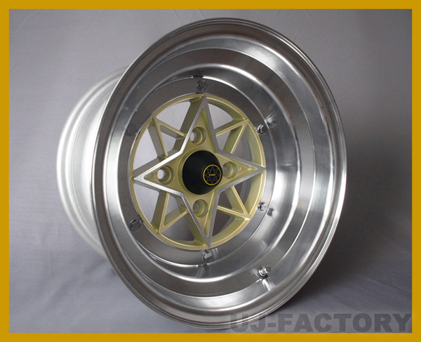 - ★送料無料★スターシャーク 限定復刻版 ゴールド 114.3-4H 14inch×9.0J(14インチ×9J)×2本+14inch×10.0J(14インチ×10J)×2本
